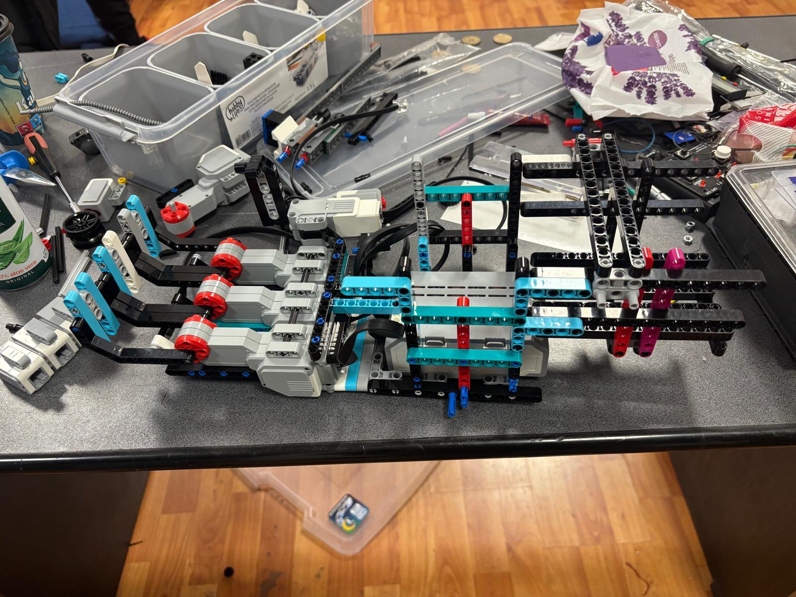 Mâna robotică este un exoschelet alcătuit dintr-un creier Mindstorms EV3, 4 motoare și piese Lego, proiectat pentru a imita mișcările unei mâini umane. Fiecare motor controlează câte un deget, iar structura din piese Lego permite ajustarea și modificarea ușoară a formei, astfel încât exoscheletul să poată fi adaptat pentru diferite dimensiuni de mână sau pentru experimente educaționale. Codul funcționează astfel: când butonul nr. 1 este apăsat, degetul nr. 1 se îndoaie, simulând prinderea unui obiect. Când butonul este eliberat, motorul revine în poziția inițială, iar degetul se deschide la loc. Același principiu se aplică și pentru celelalte degete, ceea ce permite realizarea unor mișcări coordonate, cum ar fi apucarea, strângerea sau eliberarea unor obiecte mici, demonstrând într-un mod simplu și vizual cum pot fi controlate sistemele mecatronice prin programare.